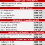 - Grabadoras de CDs: 0,33 euros